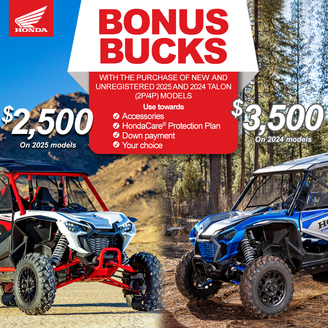 $2,500 on 2025 Models - $3,500 on 2024 Models - Bonus Bucks Talon Models