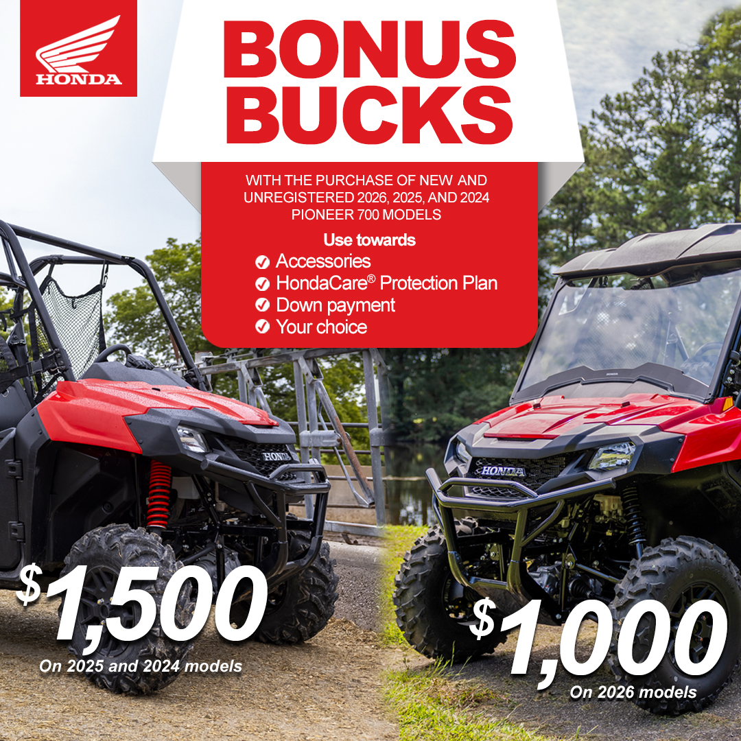 $1,500 on 2025 and 2024 Models - $1,000 on 2026 Models - Bonus Bucks Pioneer 700 Models